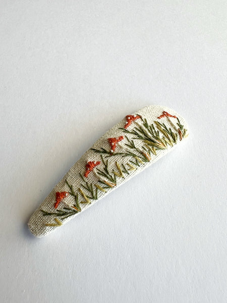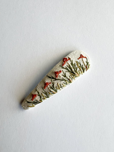 I’m very excited to bring this beautiful, limited collection of hand designed, hand embroidered clips your way. Many of you pointed out that I poured my heart and soul into each of these designs, and I sure did. Each and every one is unique, one of a kind, and will never be recreated. If you happen to snag one, know that I am SO excited for you.