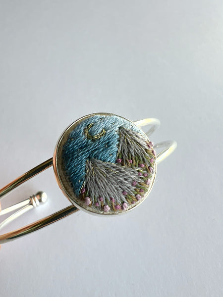 I'm very excited to bring this beautiful, limited collection of hand designed, hand embroidered bracelets your way. Each one is adorned with a carefully hand stitched piece of linen.