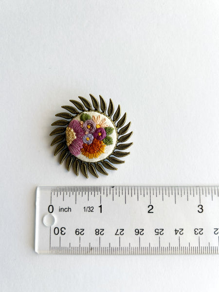 I'm very excited to bring this beautiful, limited collection of hand designed, hand embroidered pins your way. Each pin is adorned with a carefully hand stitched piece of linen.