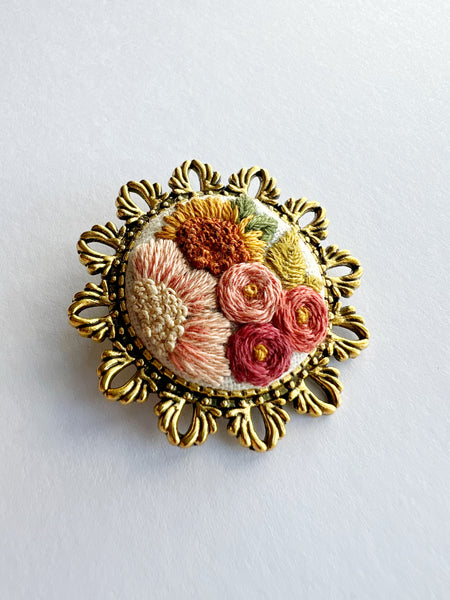 I'm very excited to bring this beautiful, limited collection of hand designed, hand embroidered pins your way. Each pin is adorned with a carefully hand stitched piece of linen.