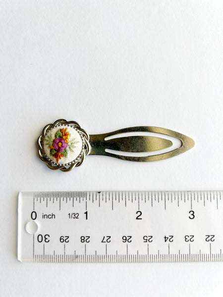 This listing is for one beautiful vintage style bookmark. Each bookmark is adorned with a tiny piece of hand embroidered linen, bringing these pieces to life and giving them character all their own.