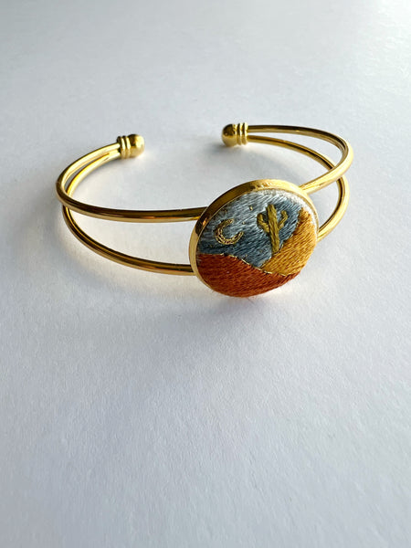 I'm very excited to bring this beautiful, limited collection of hand designed, hand embroidered bracelets your way. Each one is adorned with a carefully hand stitched piece of linen.